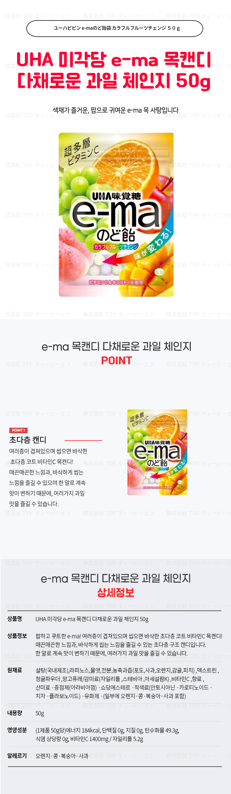 UHA 미각당 e-ma 목캔디 다채로운 과일 체인지 50g 요약정보 및 구매