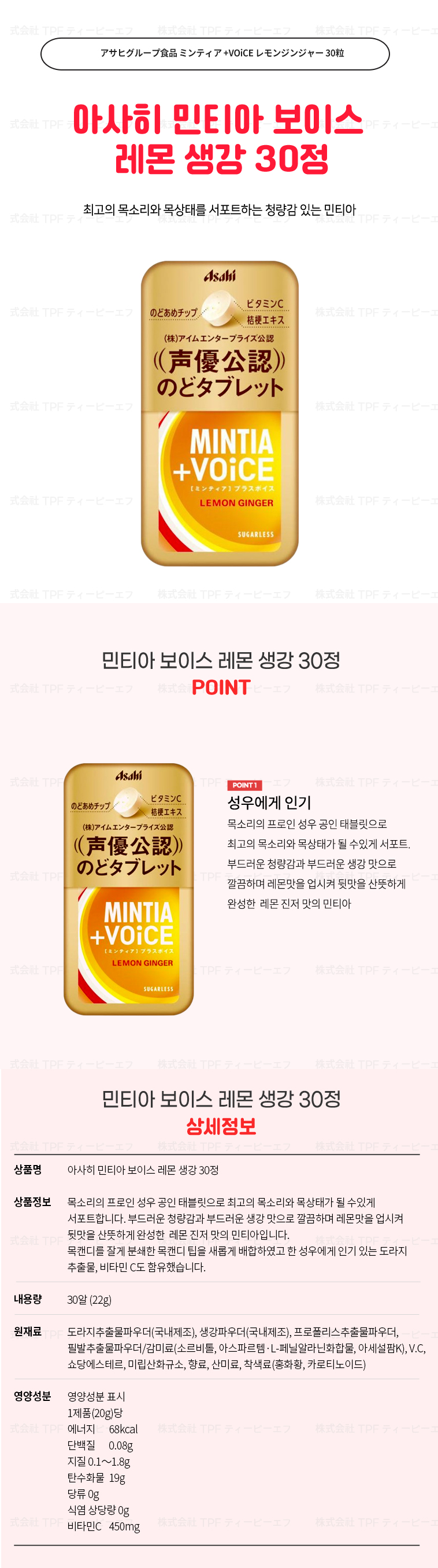 • 아사히 민티아 보이스 레몬 생강 30정