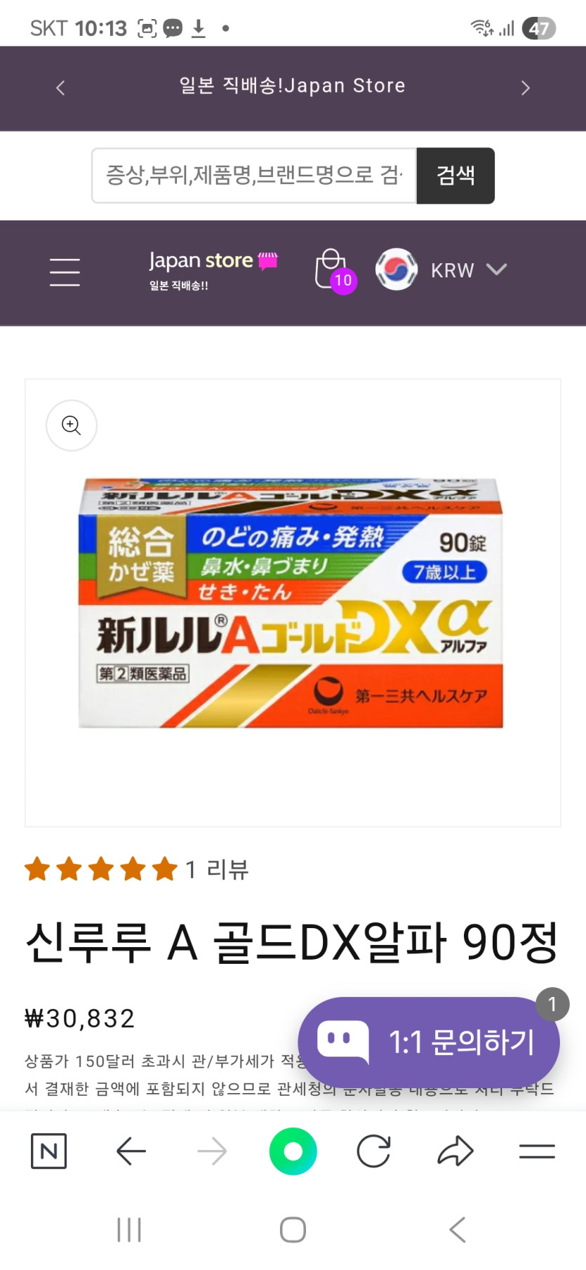 해외배송비 3천원 고정 / 10만원 이상 무료배송