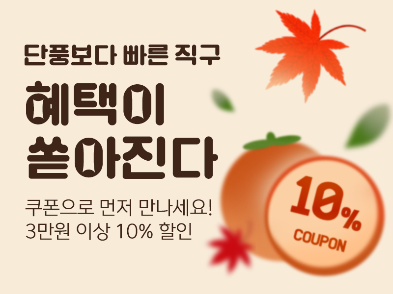 - 혜택 : 10% 할인쿠폰 증정 (3만 원 이상 구매 시)