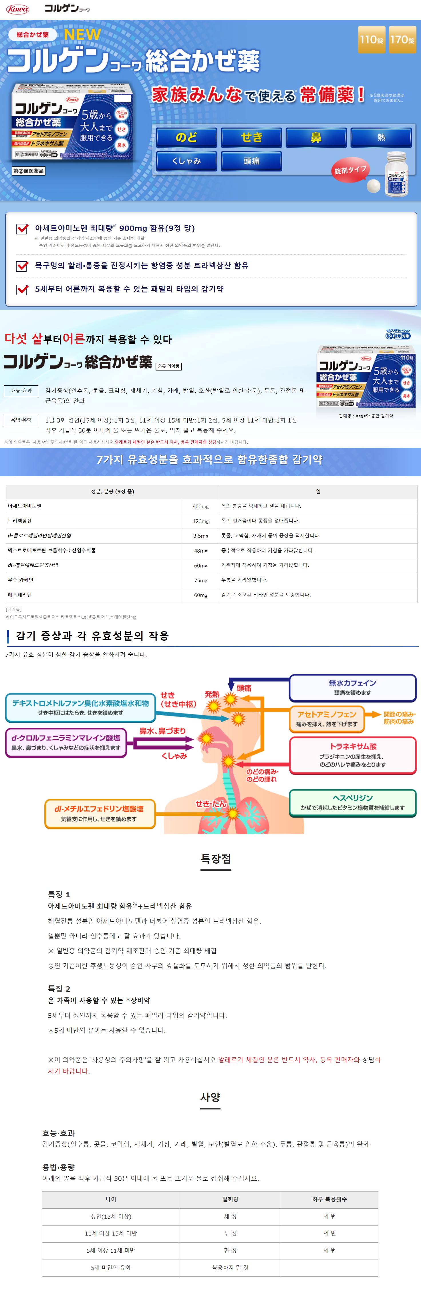 코와 코르겐코와 종합 감기약 170정 확대보기