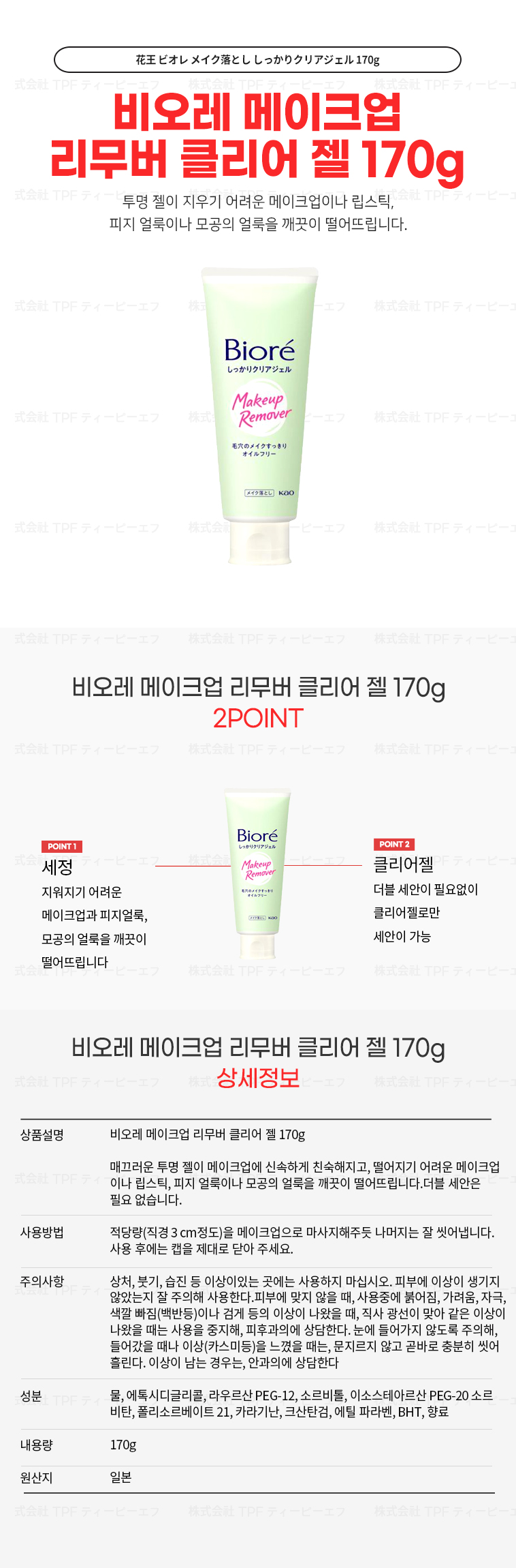 비오레 메이크업 리무버 클리어 젤 170g 요약정보 및 구매